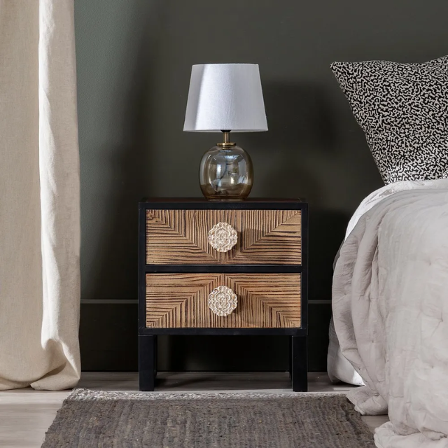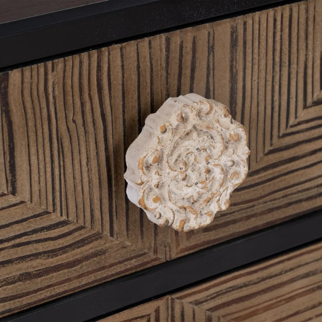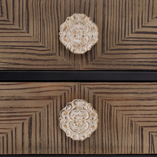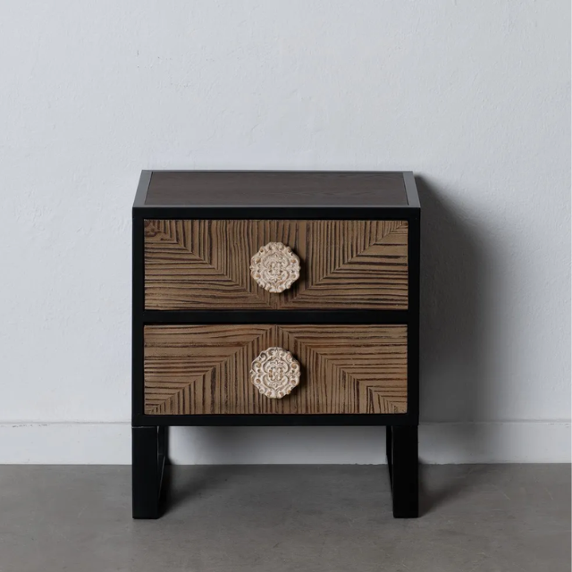 Dark brown table. Material: Fir and pine wood, dm. Leg material: Iron Leg height: 15.5cm Drawer size:...