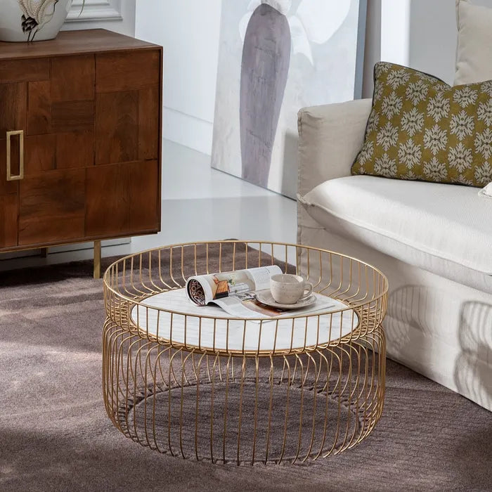 MAIN TABLE GOLD-WHITE IRON/ MARBLE ROOM 72 X 72 X 40 CM