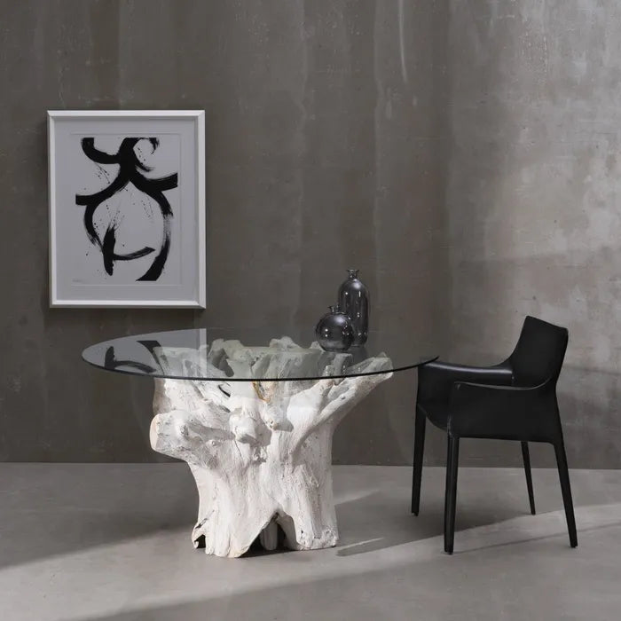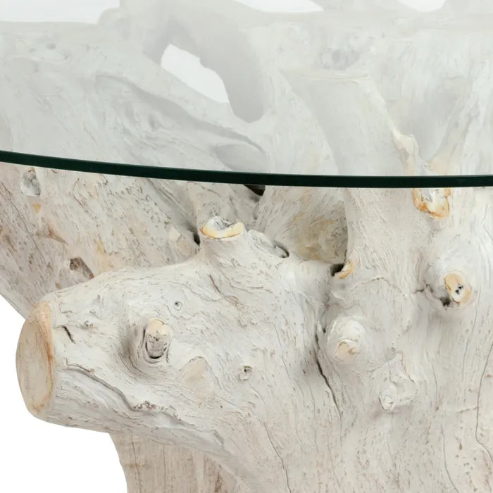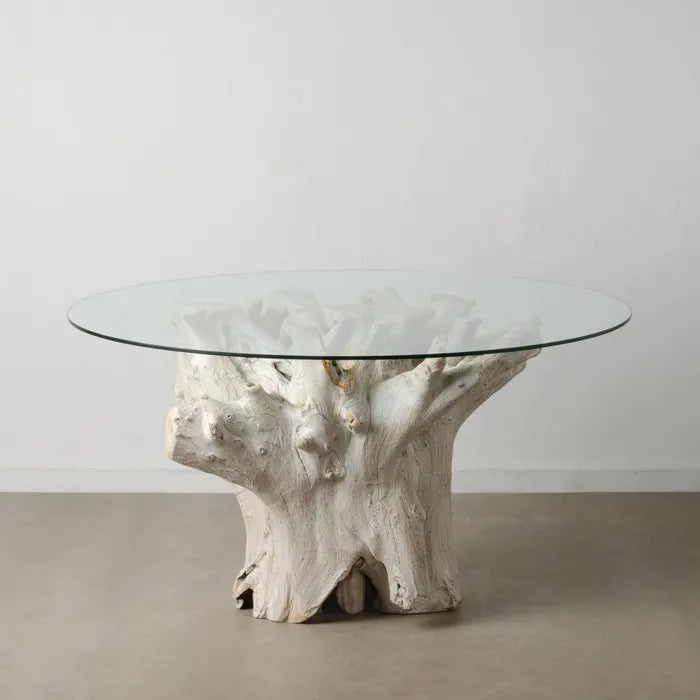 DINING TABLE WORN WHITE WOOD / GLASS 140 X 140 X 75 CM