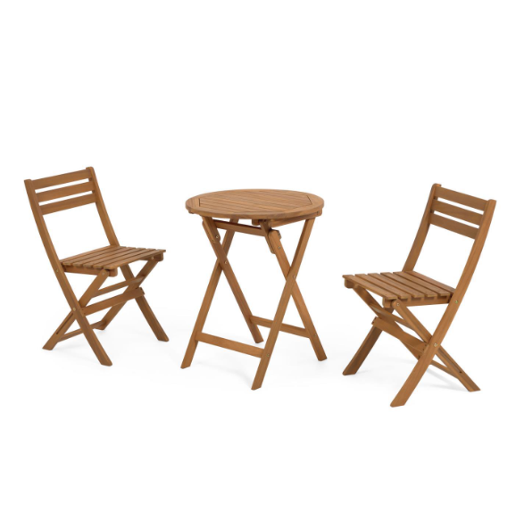 Elisia outdoor set of folding table and 2 chairs made of 100% FSC solid acacia wood