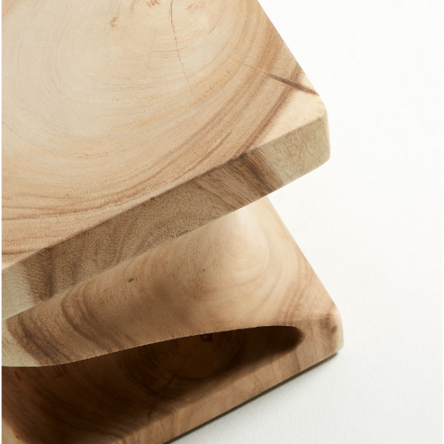 Hakon side table in solid mungur wood with carved interior 30 x 30 cm