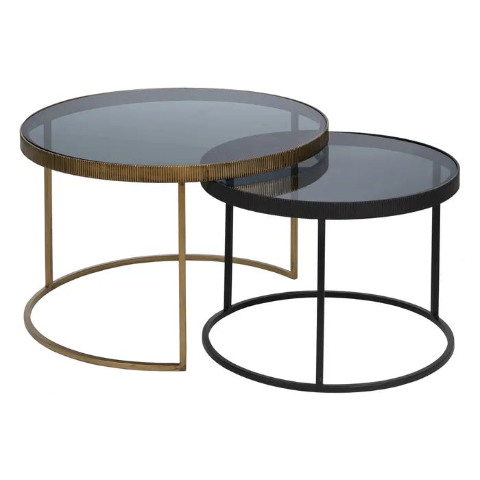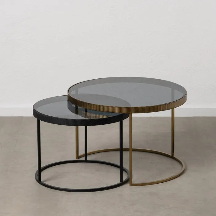 MATERIAL: IRON, GLASS. DIMENSIONS: 75X75X50CM - 60X60X45CM.