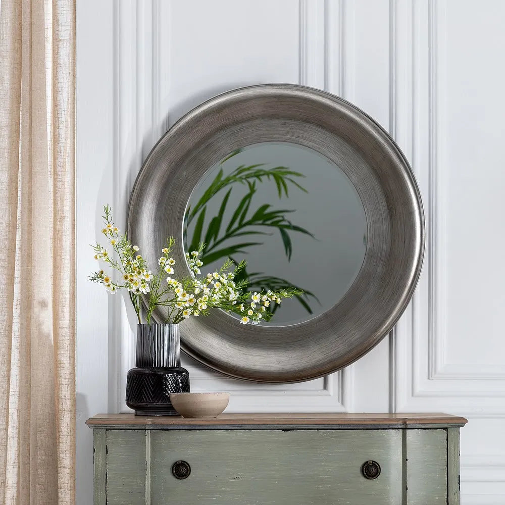 MIRROR ANTIQUE SILVER GLASS-WOOD 78 X 78 CM