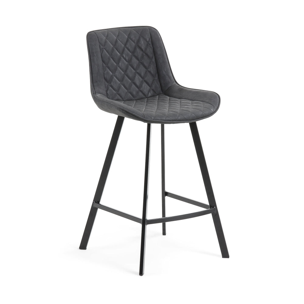 Black/Grey bar stool Adela , color: Synthetic Dark Grey Fabric , Black steel base with a 66...