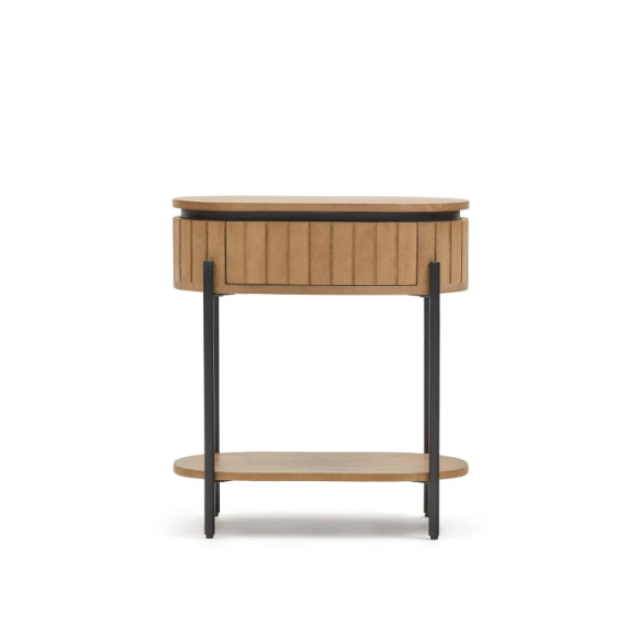 Licia bedside table 1 drawer in solid mango wood and black painted metal 55 x 65 cm