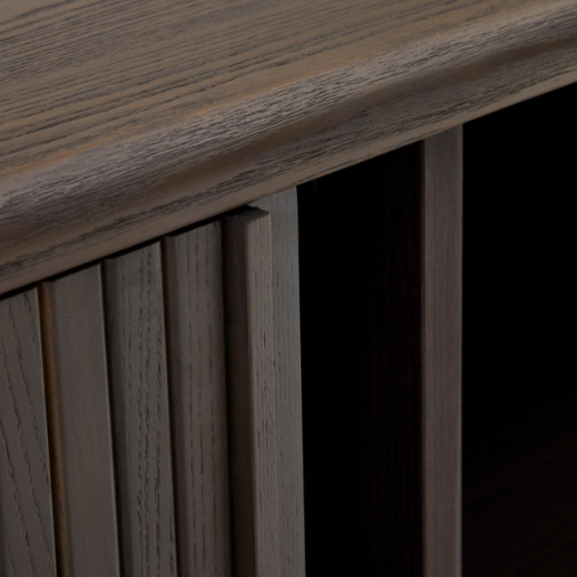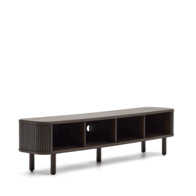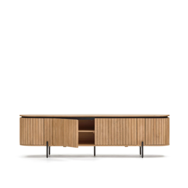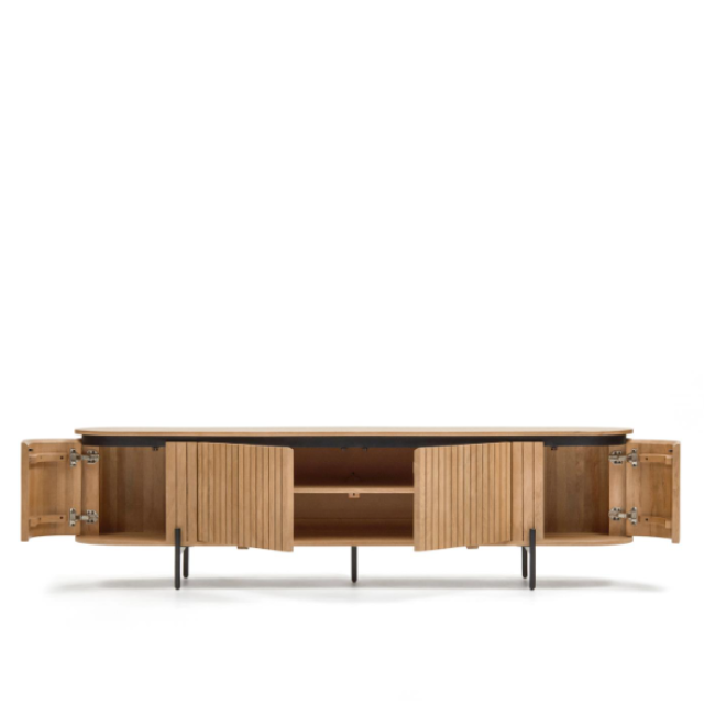 Licia TV cabinet with 4 doors in solid mango wood / ash veneer and black painted metal...
