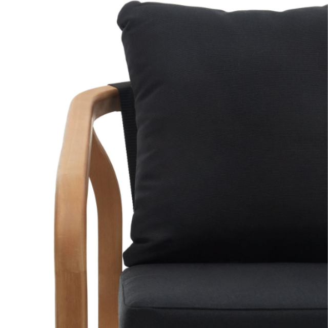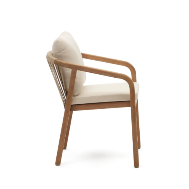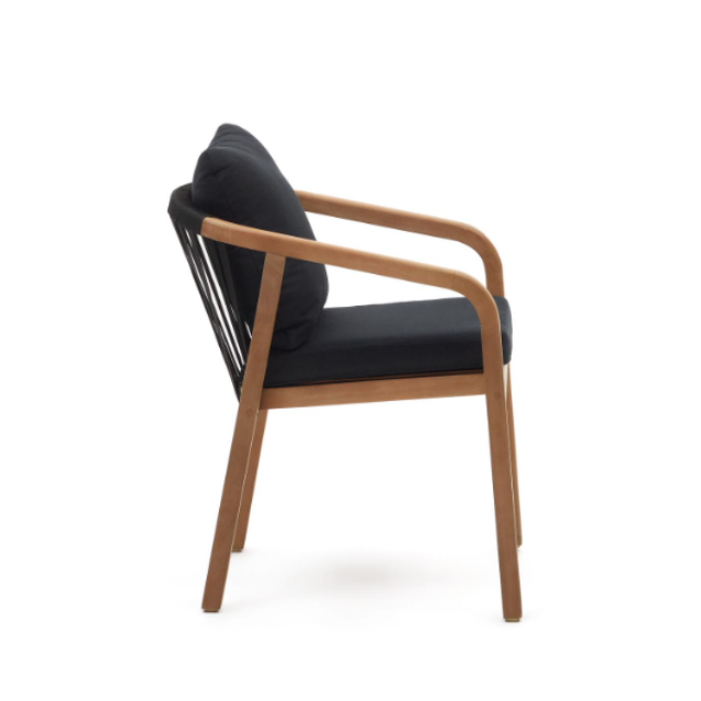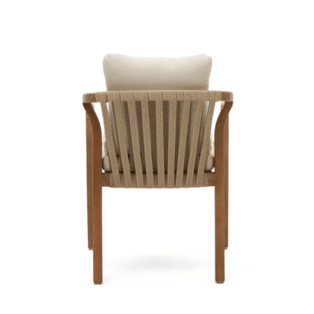 Malaret stackable chair in solid eucalyptus wood and Beige / Black rope FSC 100%
