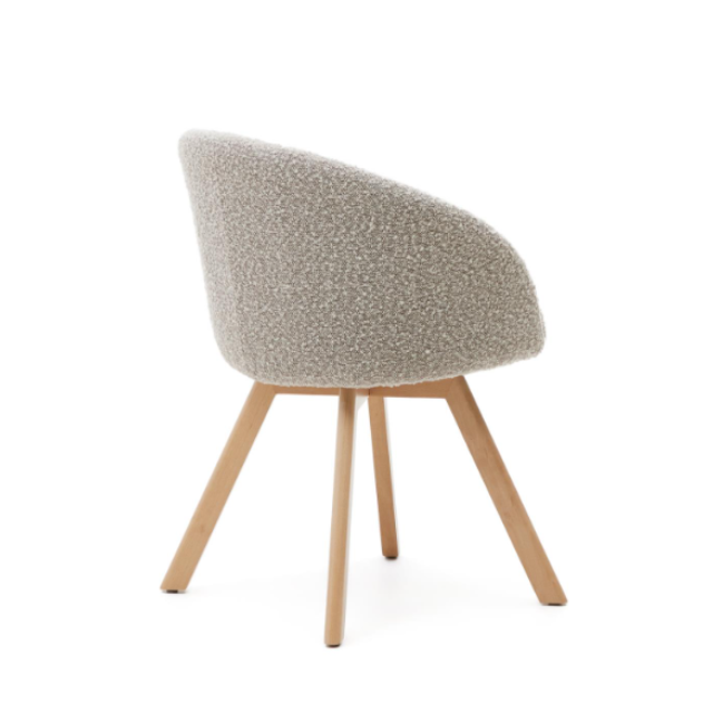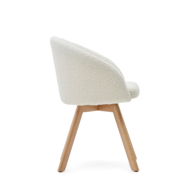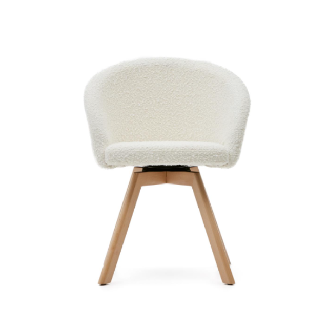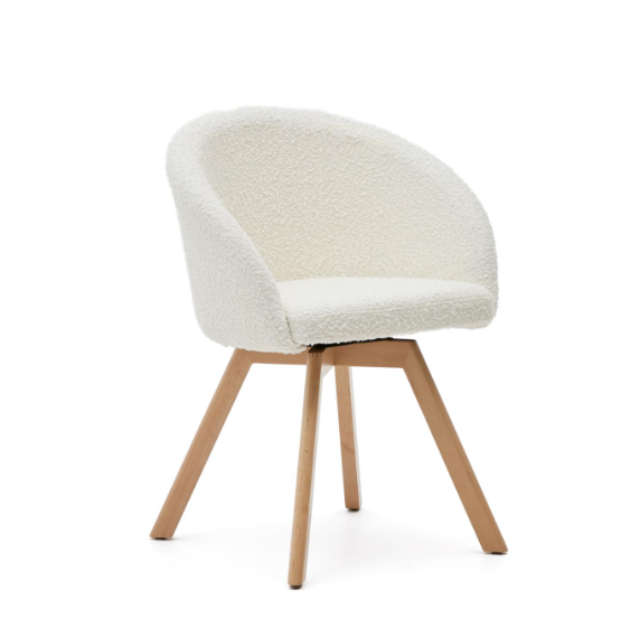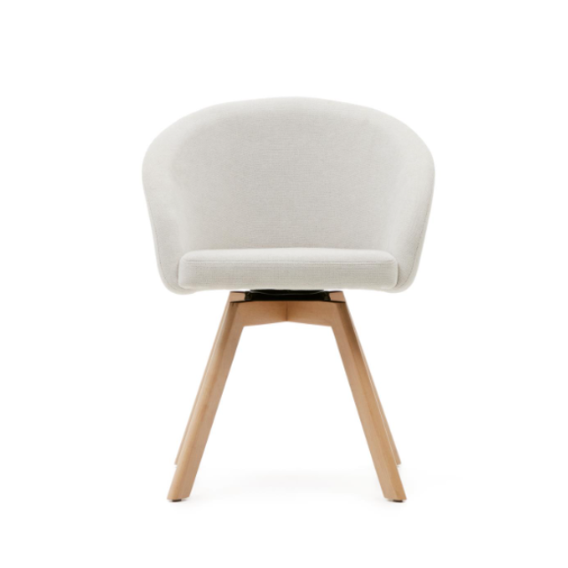 Marvin swivel chair Beige / White / Gray chenille and solid beech wood legs with natural finish ...