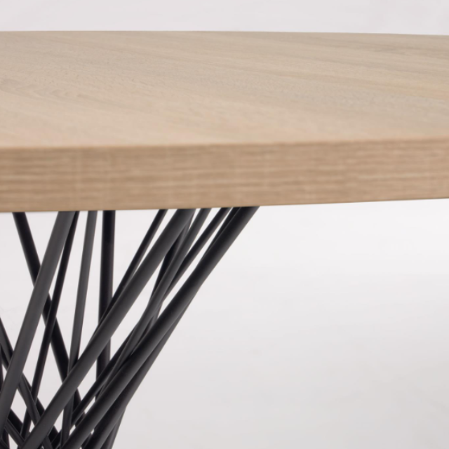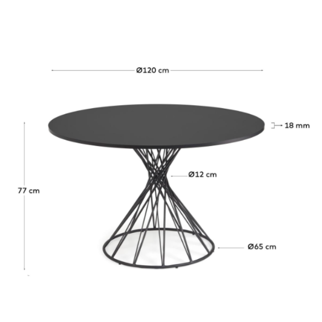 Niut round melamine table with Natural /Black finish, black finish steel legs, Ø 120 cm.
