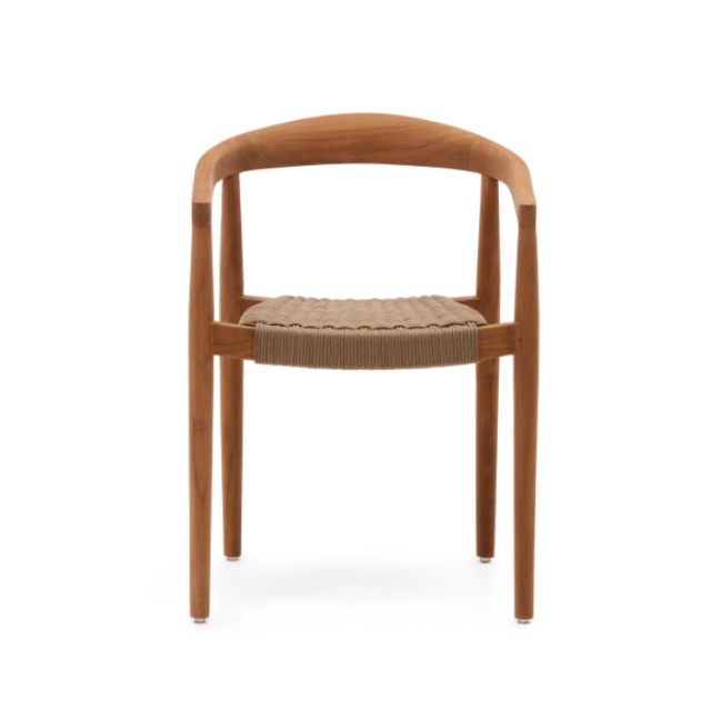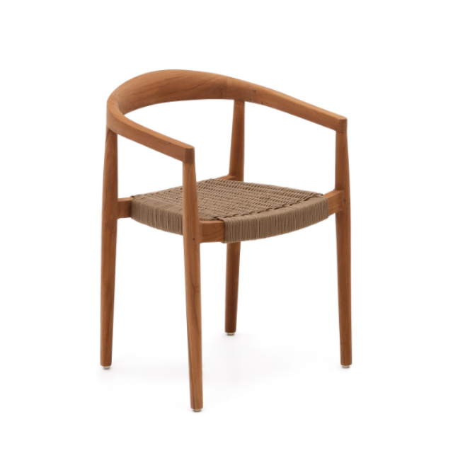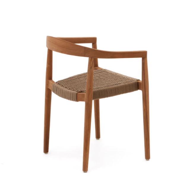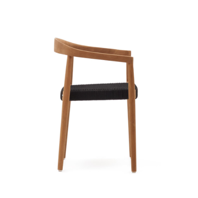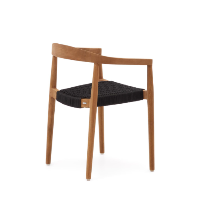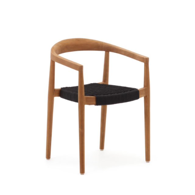 Ydalia outdoor stackable chair in solid teak wood with natural finish and Black or Beige rope
