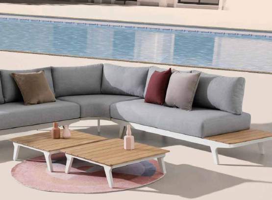 Tamaño: Corner: 284x283x64 cm; Right module: 185x76x64 cm; Left module: 185x76x64 cm; Center module: 99x99x64 cm; Table: 74x74x22 cm