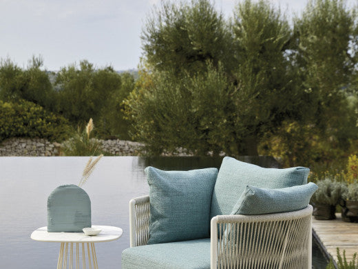 Armchair, aluminum frame powder coated, woven in Round Trendyrope. Aesthetics and comfort meet in this armchair with...