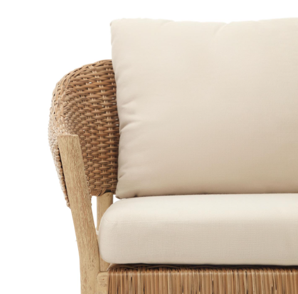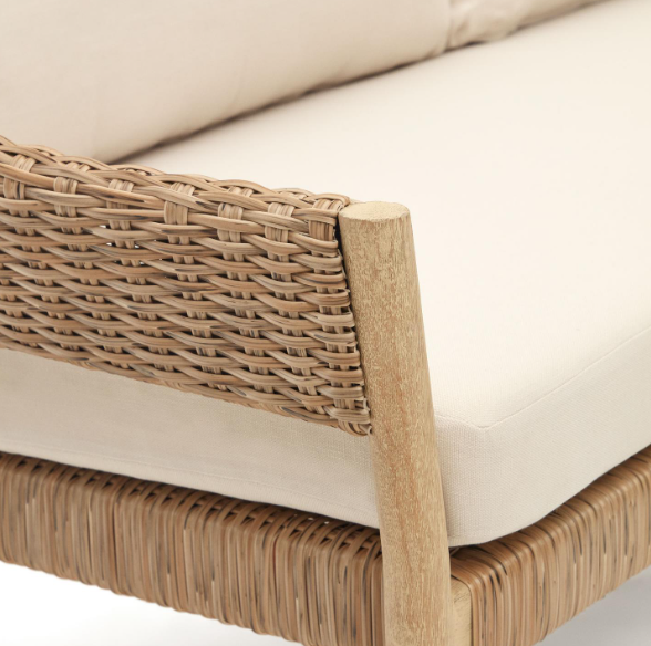 Pola stackable 2-seater sofa and 2 armchairs set in solid eucalyptus wood and FSC synthetic rattan
