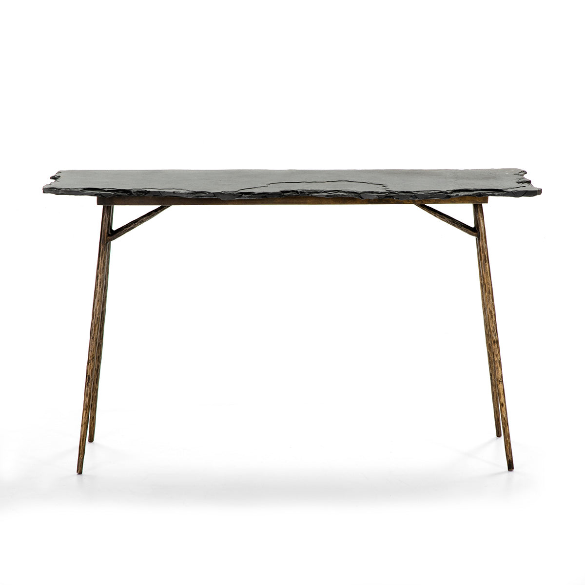 CONSOLA 130X33X74 APROX. PIEDRA NEGRO/METAL DORADO ANTIQUE