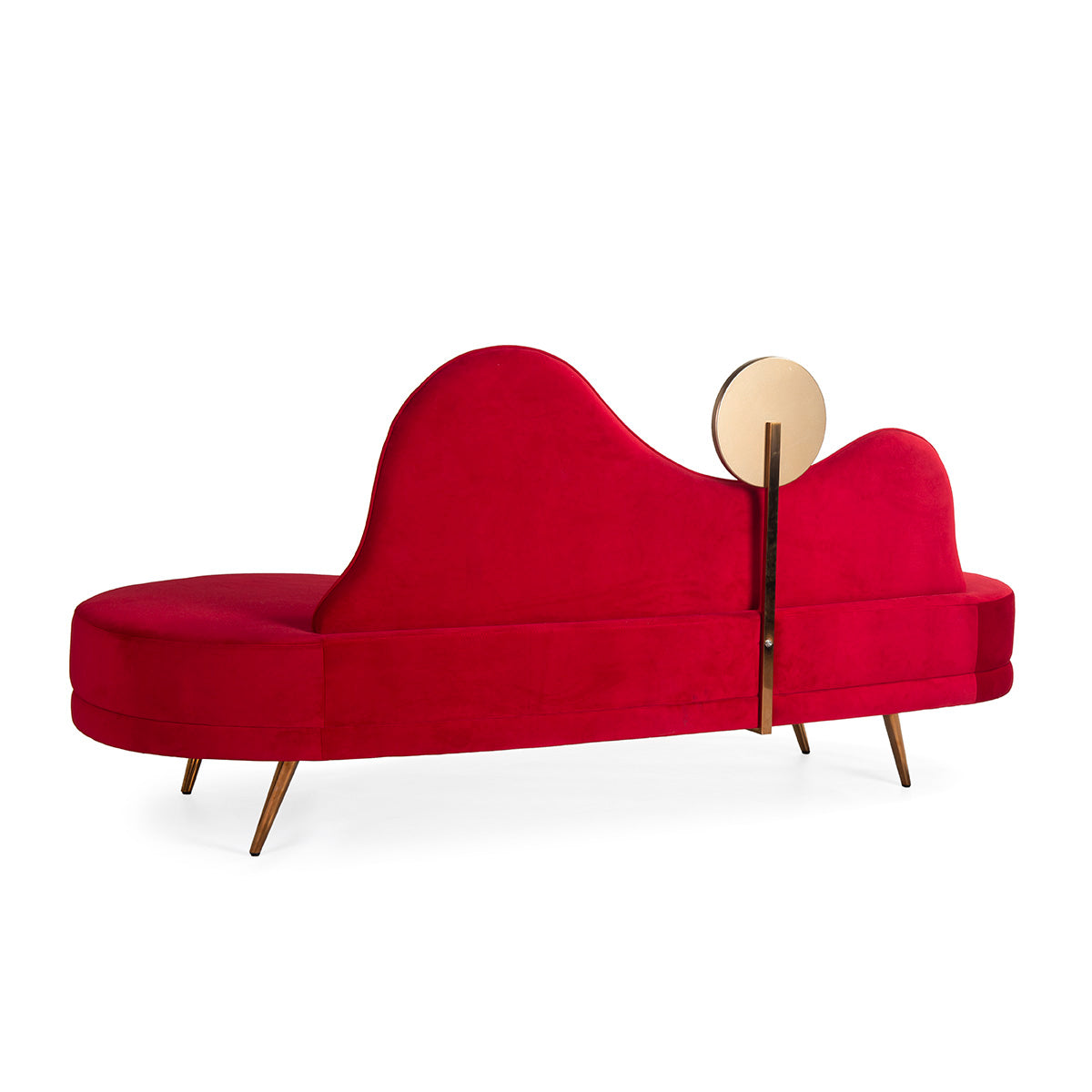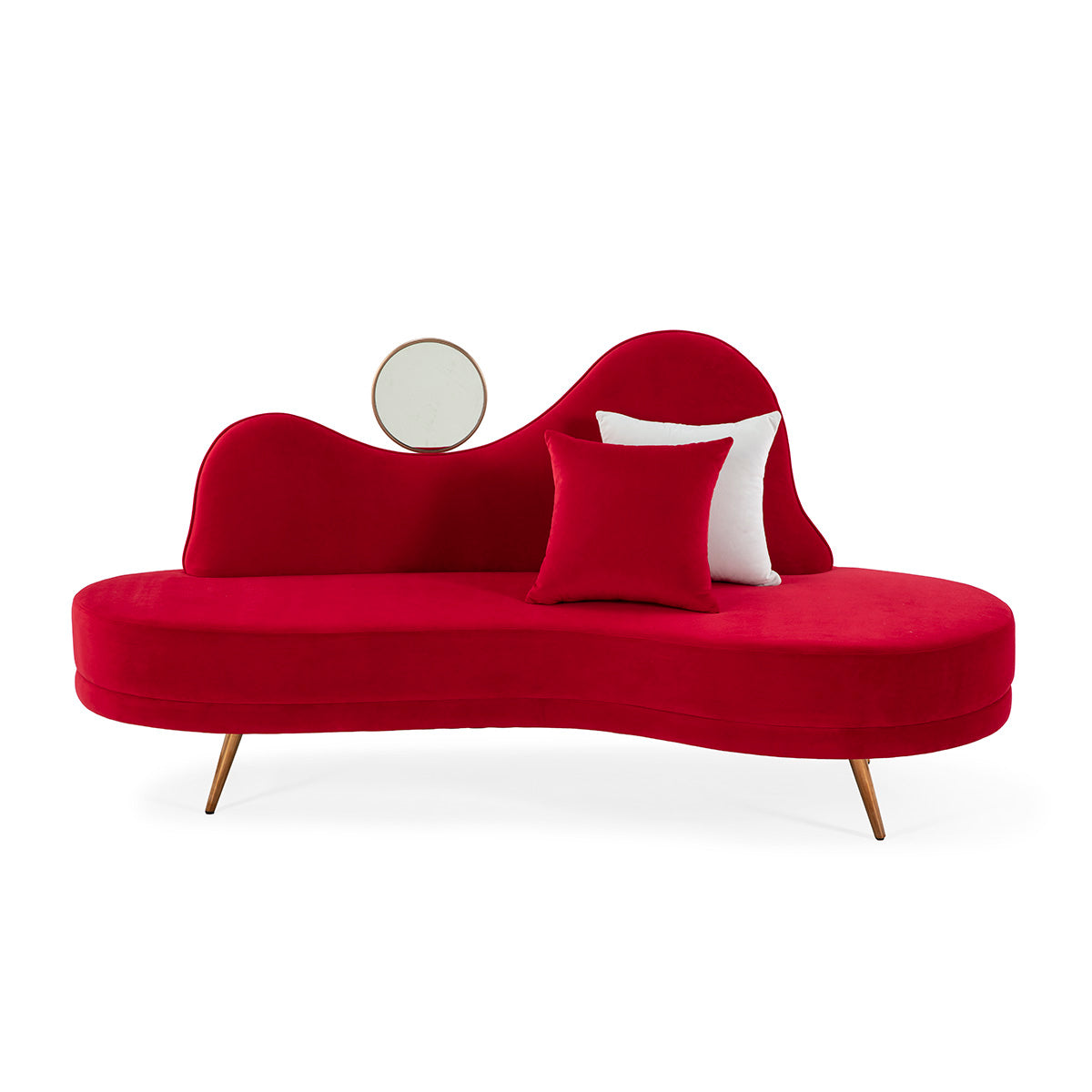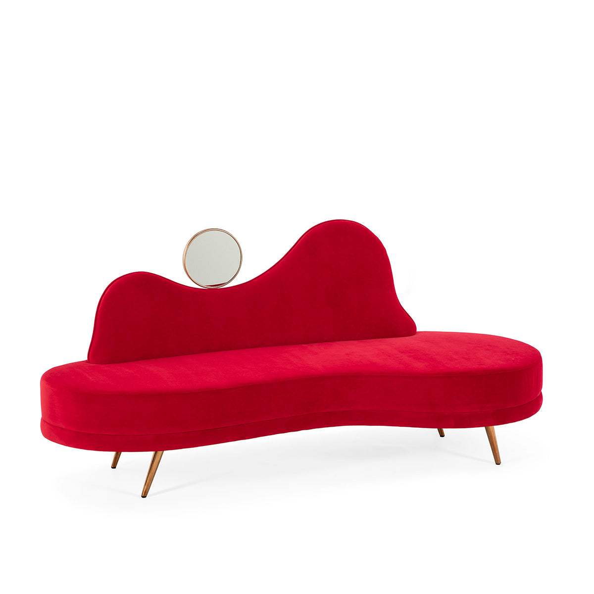 SOFÁ 198X86X93 ESPEJO/METAL DORADO/TELA ROJO