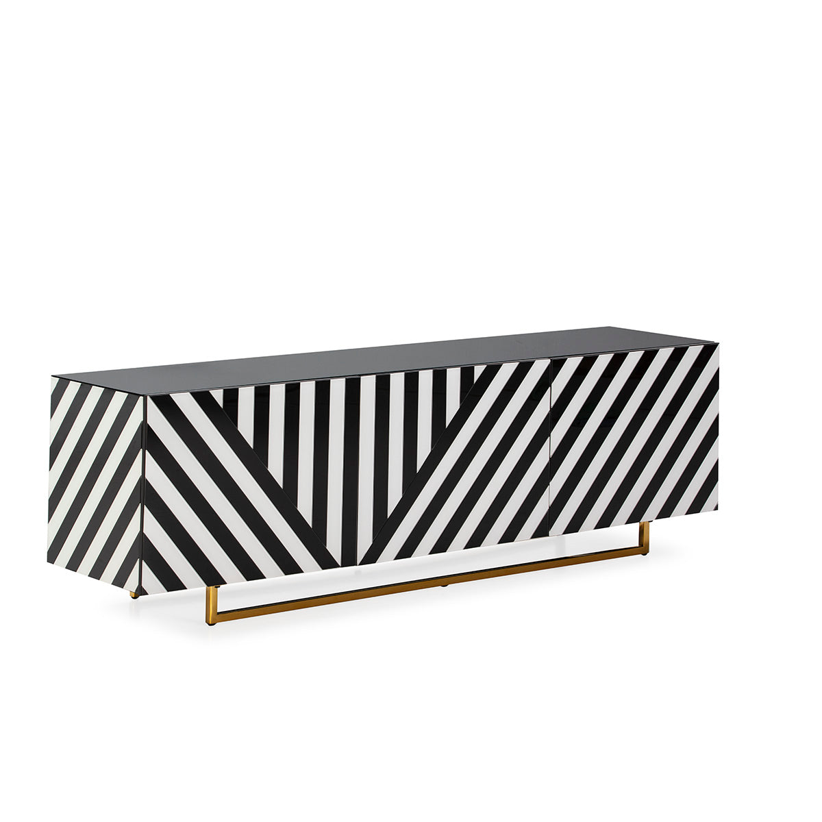 MUEBLE TV 175X44X46 CRISTAL BLANCO/NEGRO/ACERO DORADO