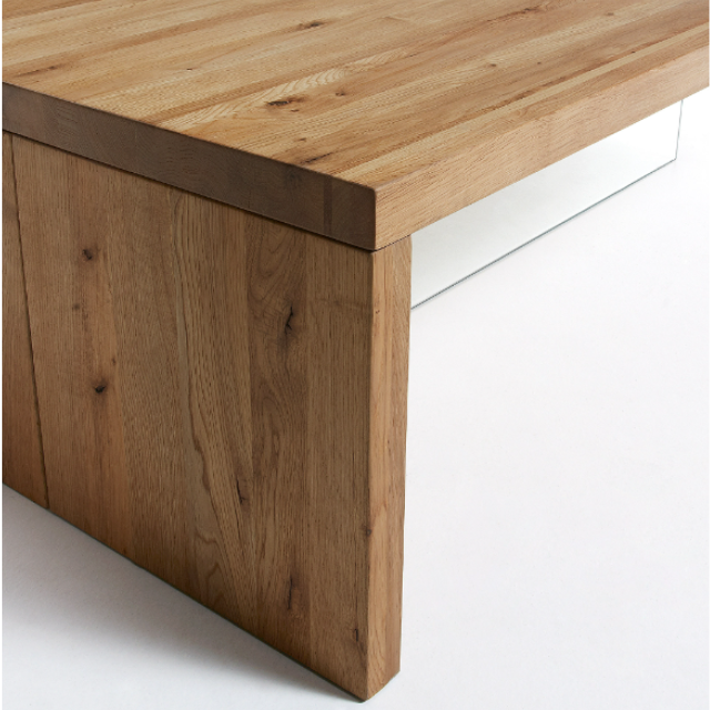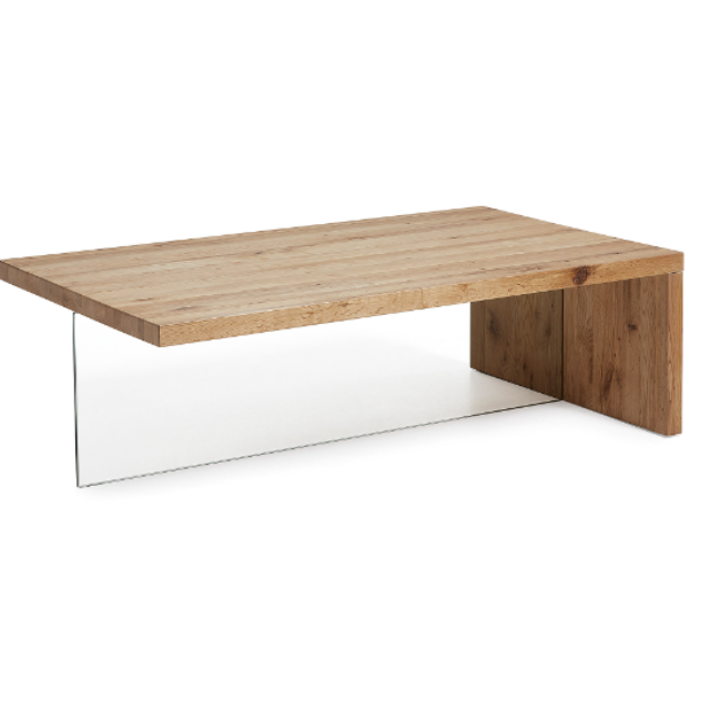 Tulsi coffee table solid oak wood and glass 120 x 70 cm