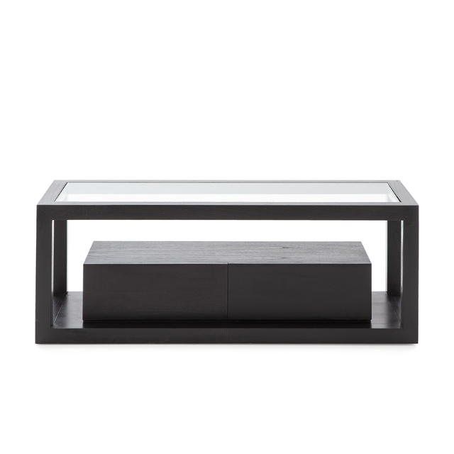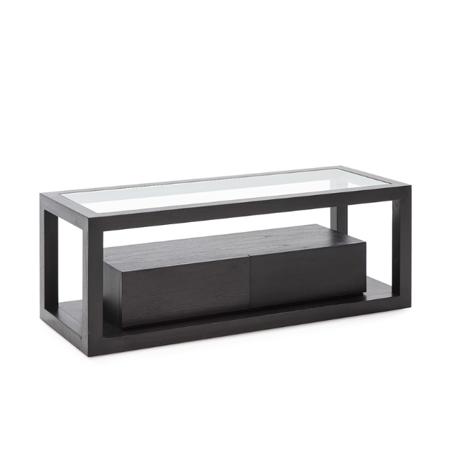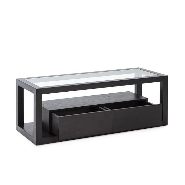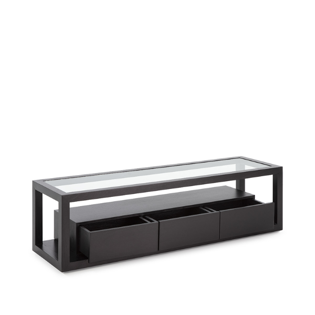 TV Unit black glass / wood 2 or 3 drawers.  Wood from sustainable forests.