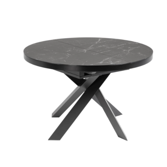 Vashti round extendable table Ø 120 (160) cm porcelain steel black finish