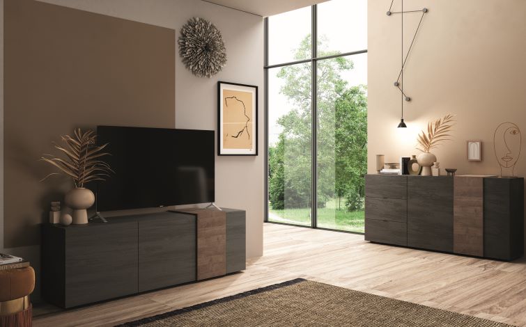The VENUS TV Unit offers a sleek, modern look for any home with its two-tone wood design...