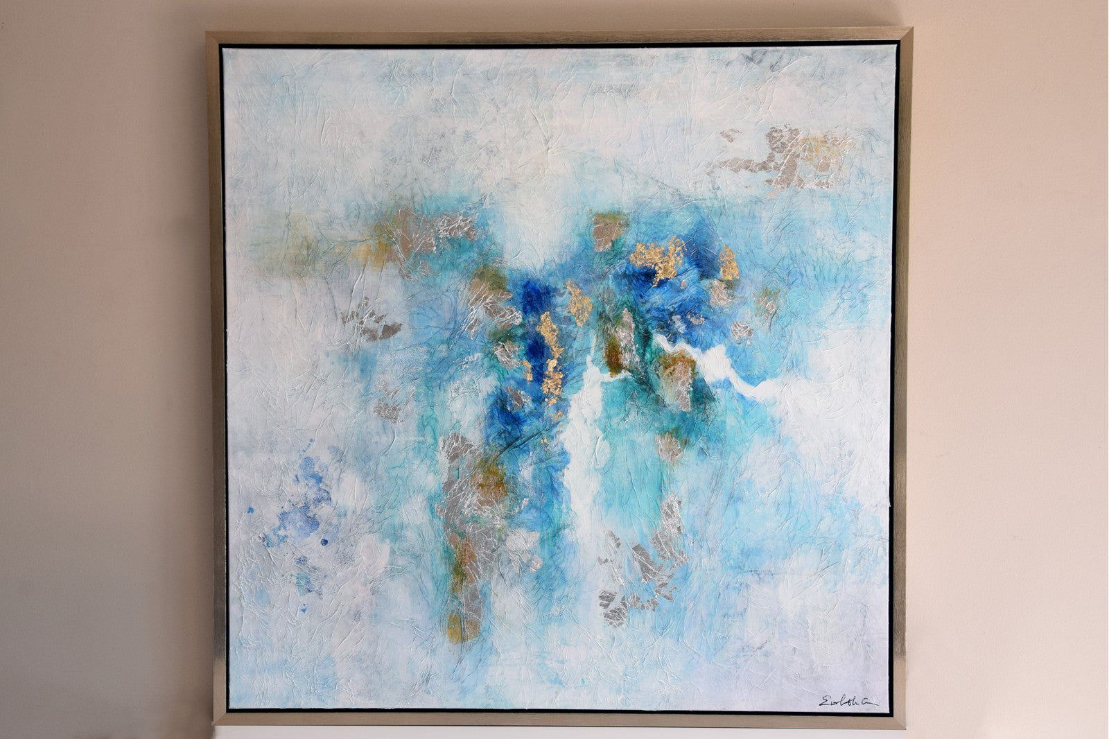 100x100CM ABSTRACT PAINTING BLUE N2 WITH FRAME