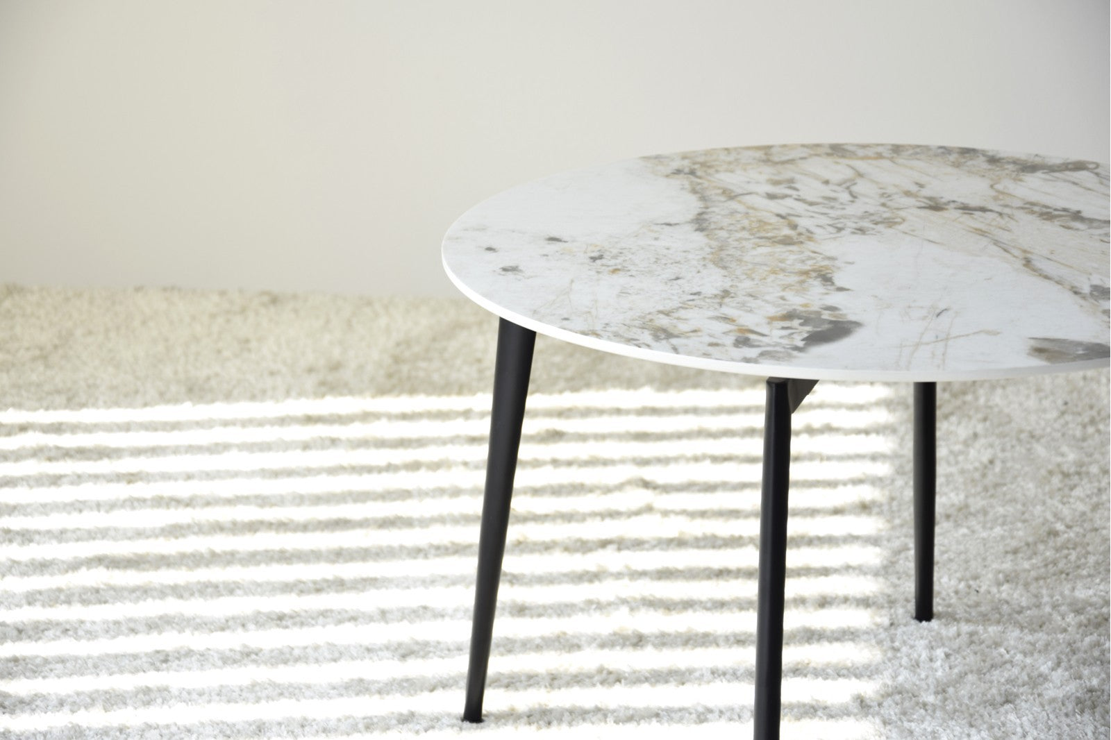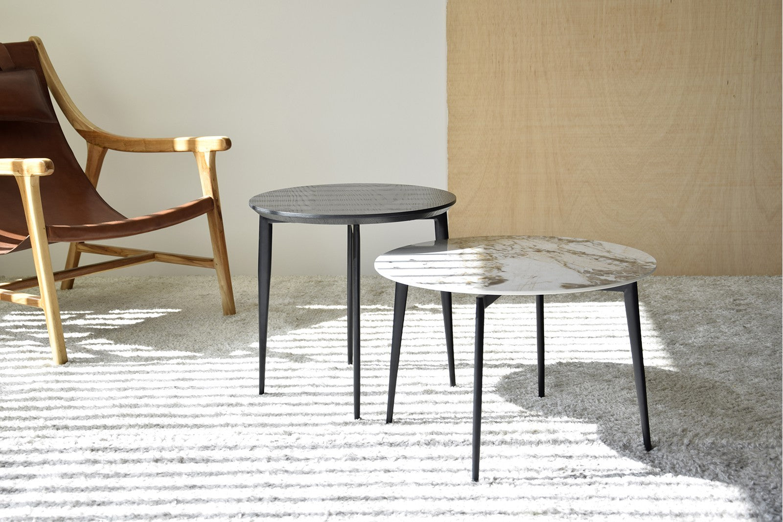 MESA AUXILIAR PIEDRA SINTERIZADA Y METAL 60 X 40