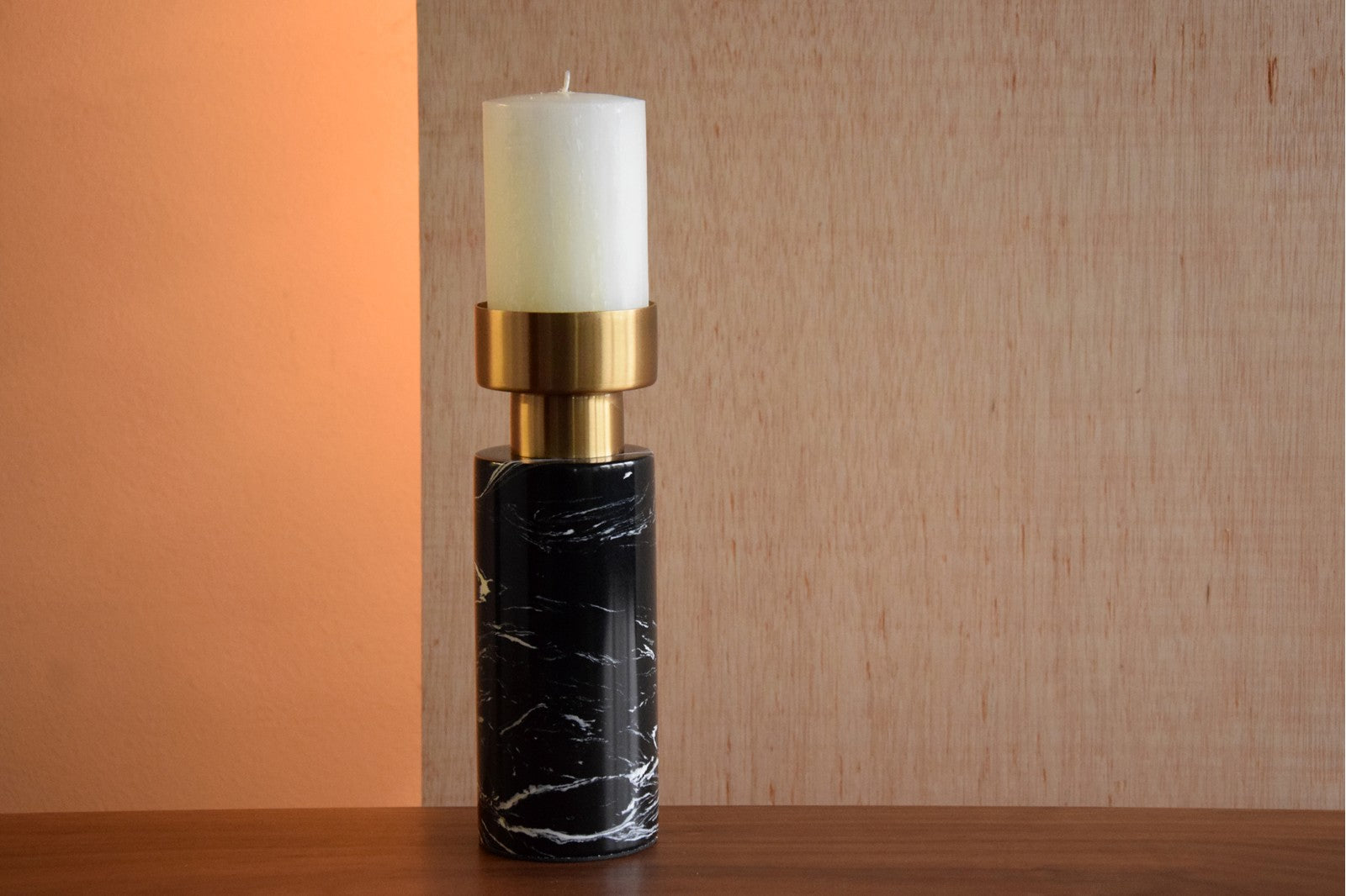 CANDLEHOLDER IN MARBLE AND METAL. LARGE 8x24CM
