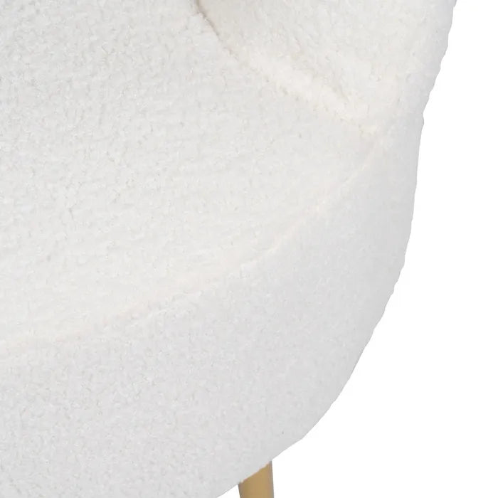 This armchair features a distinct white fabric and metal construction for a sophisticated look.