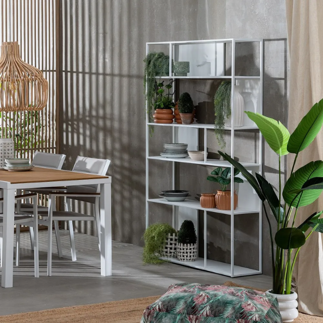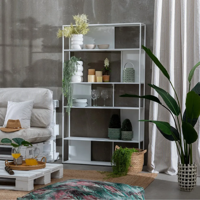White metal shelving.  Material: iron Hollow measurements: 97x22x29 97x22x39.5 97x22x29 97x22x39 97x22x29cm. Includes rear washer for fastening....