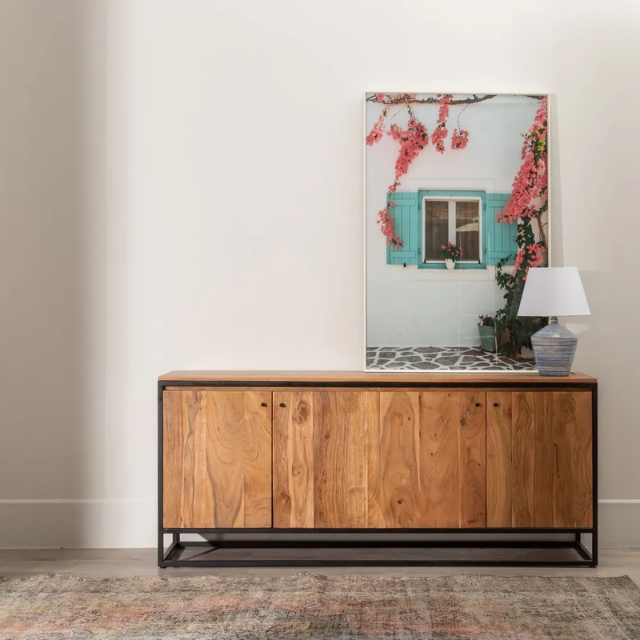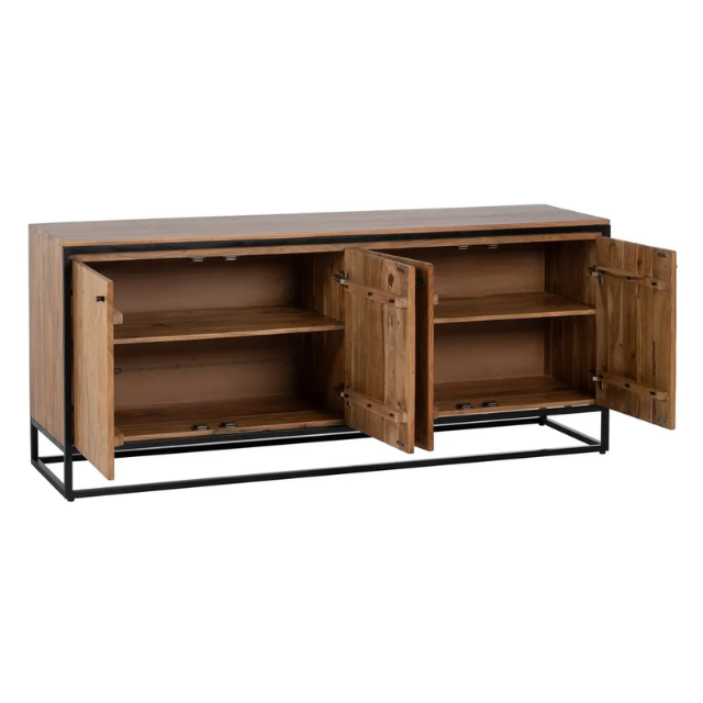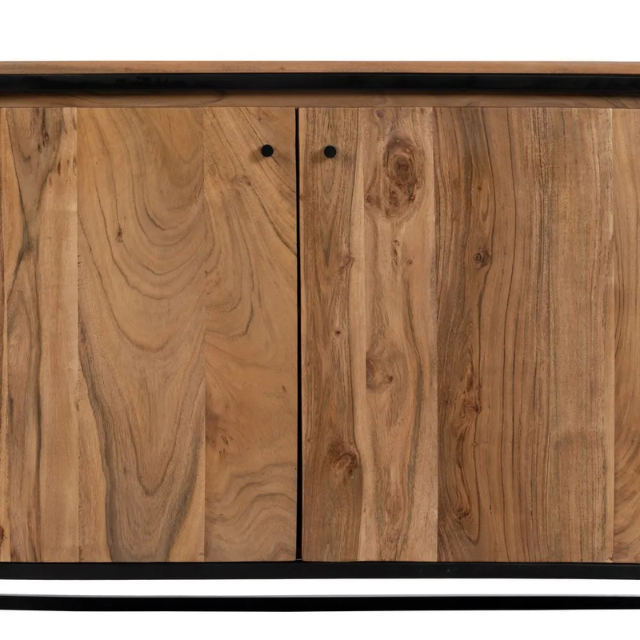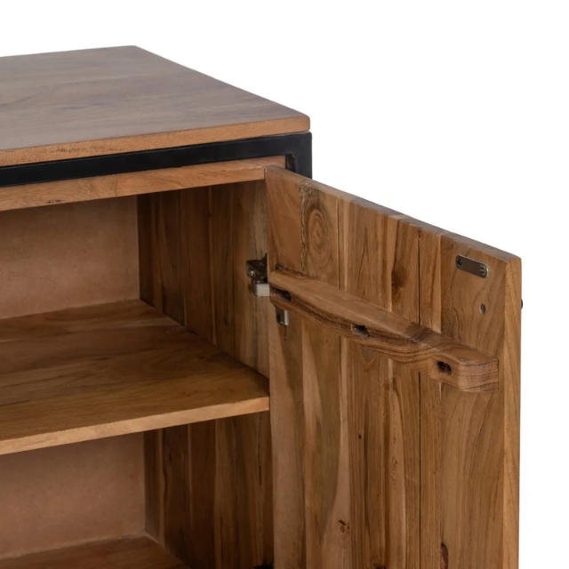 Natural wood - metal sideboard living room.  Material: acacia wood, iron. Doors: 43x54.5cm. Leg height: 14cm.