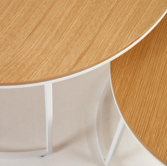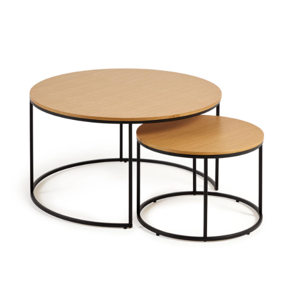 Yoana set of 2 nesting side tables in oak veneer and painted metal